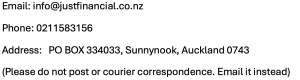If you are not satisfied with our financial advice service you can make a complaint by emailing info@justfinancial.co.nz. In the subject line you must include “Complaint”.